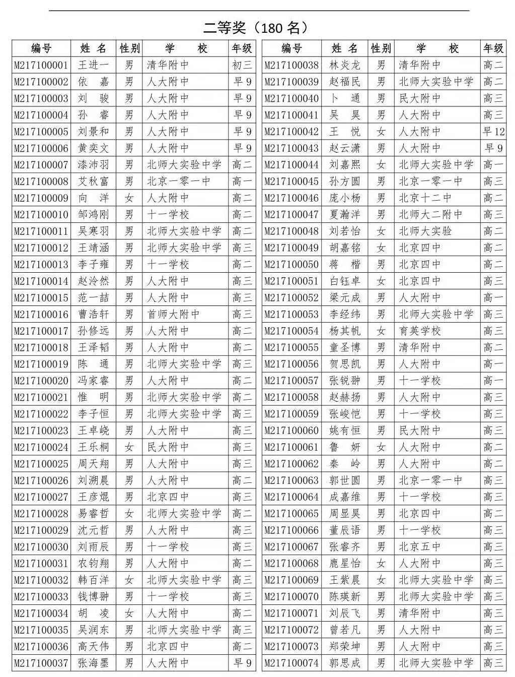 2017年北京高中数学联赛获奖名单:65人获得一等奖!2018年自主招生已经在的进行当中,各位想参加的考生准备好竞赛奖项了吗?北京市2017年高中数学联赛获奖名单已经公布,伊顿教育自主招生小编整理了此次竞赛的获奖名单,其中65人获得一等奖,180人获得二等奖,120人获得三等奖。