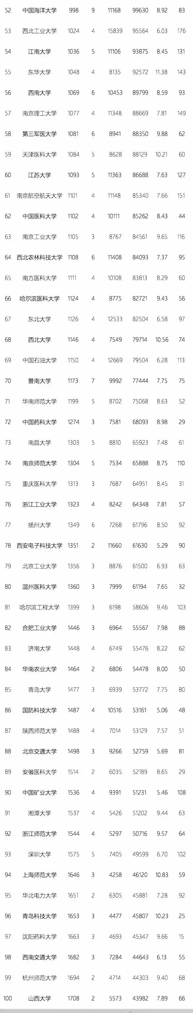 2017年11月的各校ESI综合排名情况如下(按照各高校论文总引用次数进行排名;中国地质大学、中国石油大学和中国矿业大学三所高校并没有区分两地办学的情况):